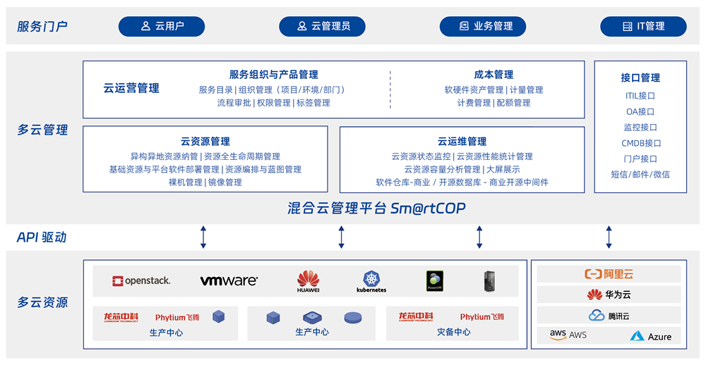 面向各行业用户多云资源管理、运维及服务提供的综合挑战,提供异构异地异芯片多云资源的统一管理、统一运维、统一监控及统一运营服务,简化多云管理复杂度,提升用户用云满意度,释放云平台业务价值。
