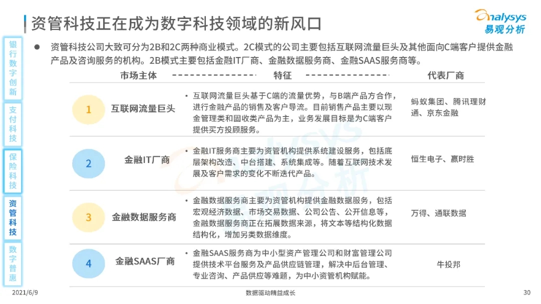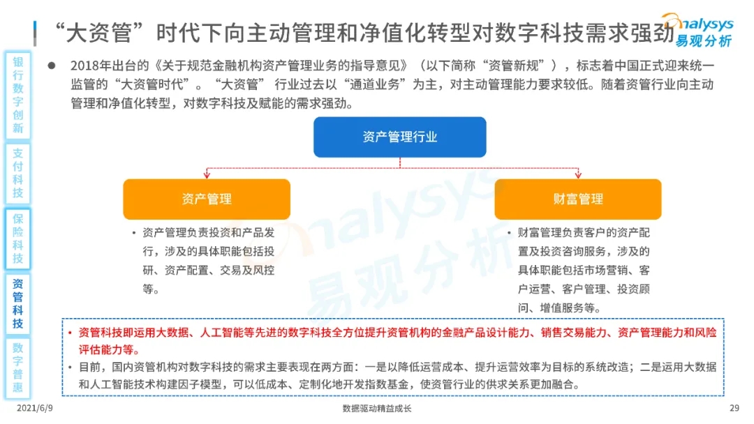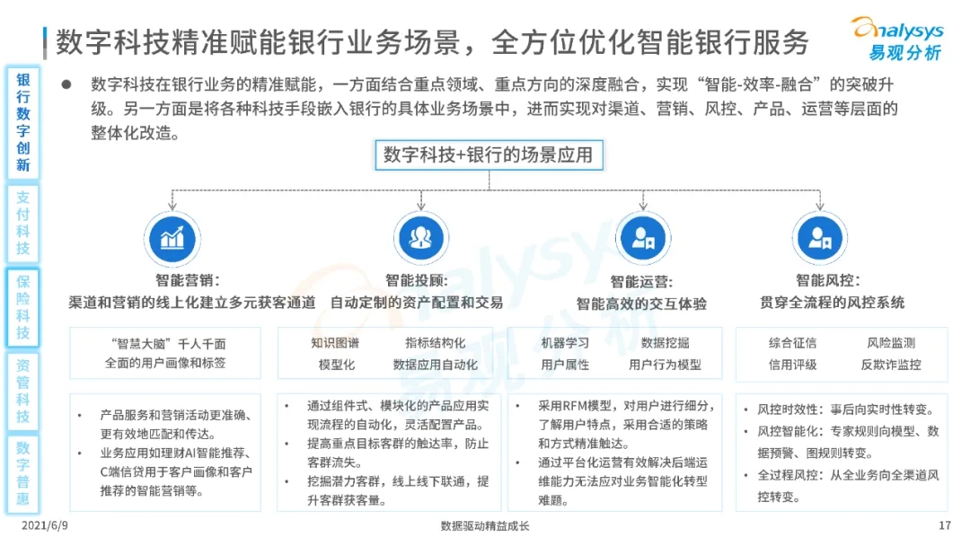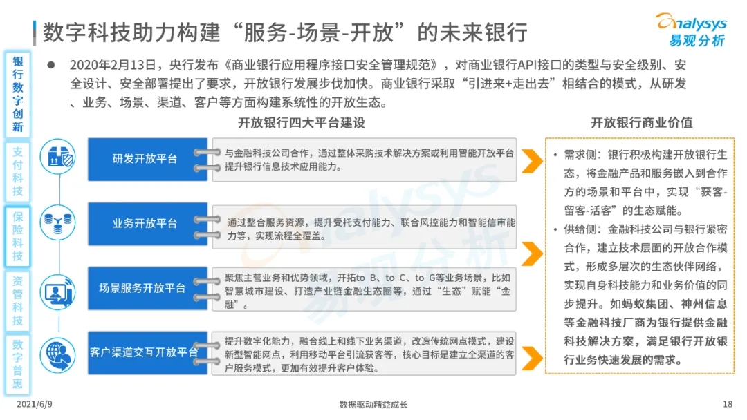 以大数据、人工智能、物联网、区块链等为代表的数字科技驱动金融产业数字化方兴未艾,数字科技使得金融和科技两个领域产生更紧密的场景联结,使得数字科技服务可以更早、更有效地介入到金融产业增长模型中去,更早的融入到企业和个人的资产生成过程,并从根本上提升金融机构资产透视能力和资产定价能力,帮助金融机构和实体部门降低成本、提升效率、增强用户体验及优化业务模式。