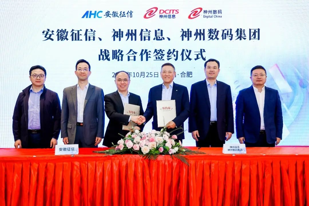 2023年10月25日,神州信息、神州数码集团与安徽征信共同举办战略合作签约仪式,宣布将在数据资产、数字产融云、金融科技与生成式AI等领域建立战略合作伙伴关系,根植安徽、面向全国,以数字技术推动金融服务实体经济,赋能产业数字化转型升级。