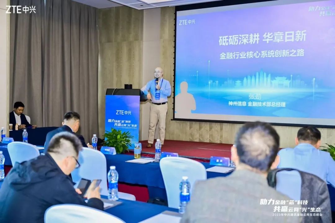近日,在中兴通讯举办的金融云网生态峰会中,神州信息作为中兴通讯在金融领域的重要战略伙伴受邀参会。神州信息金融生态部总经理李拥军代表公司参会,神州信息金融技术部总经理张劲代表公司发表“砥砺深耕、华章日新——金融行业核心系统创新之路”主题演讲。