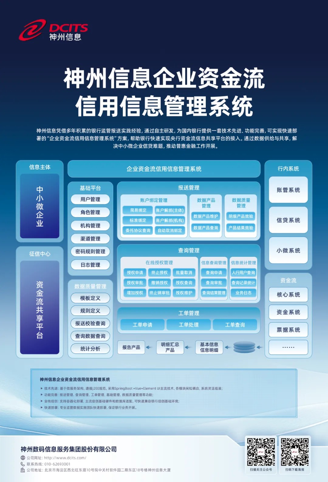 作为国内领先的金融科技企业,神州信息是国内少数具备全监管建设能力的厂商。自主研发,包括:人民银行大集中、利率报备、存款保险、反洗钱、1104、一表通、外管账户等覆盖人行、总局、外管局、地方监管等各国家监管机构在内的体系化金融监管解决方案。累计服务国内近200家银行,包括:人行地方分行、政策性及股份制银行、省农信/农商和城商等。